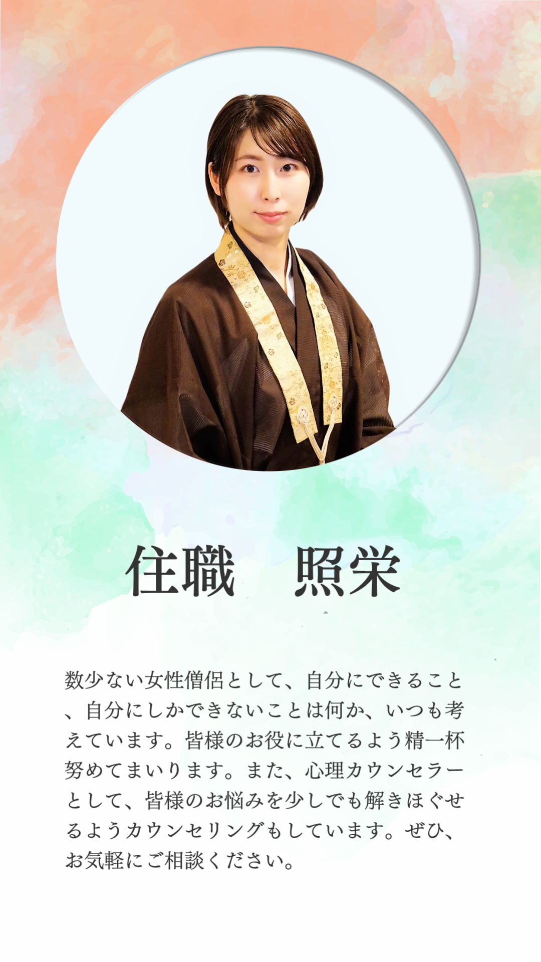 科学が発展した現代では、宗教の役割とあり方が問われています。我々は、科学によって劇的に生活が豊かになった現代だからこそ、科学の力ではまだ乗り越えにくいことに貢献できるよう努めています。例えば、死への向き合い方、勝負事への心の持ち方、漠然とした根拠なき不安の解消など、皆様の心の拠り所となることは特に重要な役目だと考えています。来るもの拒まず、去るものを追わず、私たちは先代の思いに従い、いついかなる時も皆さまの心に安寧が訪れるよう尽力してい参ります。