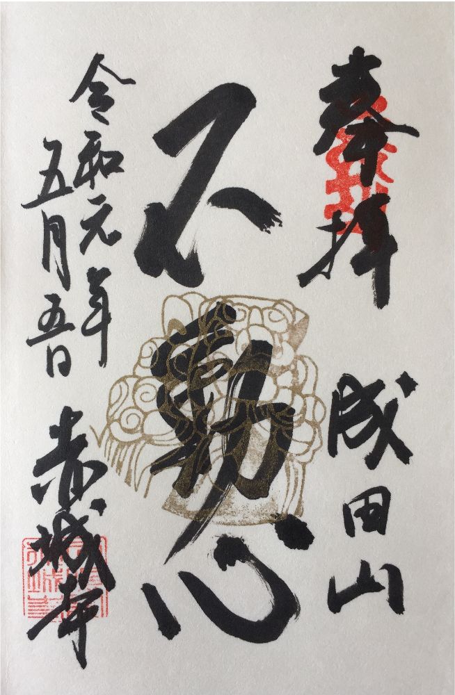 御朱印とはお寺に写経をご奉納あるいはご参拝いただいた証書のことです。成田山赤城寺では、ご本尊であるお不動さまの「不動心」をしたためます。不動心とは「何事にも動じない不変の心」を意味し、自らの成長を祈願して、初心を忘れず鍛錬・修行に臨み、いざ勝負事の際には相手、そして自らの心の変容に惑わされずに普段の力を発揮するための精神性を表した言葉になります。御朱印をご依頼されたい場合は、お気軽にお声がけください。